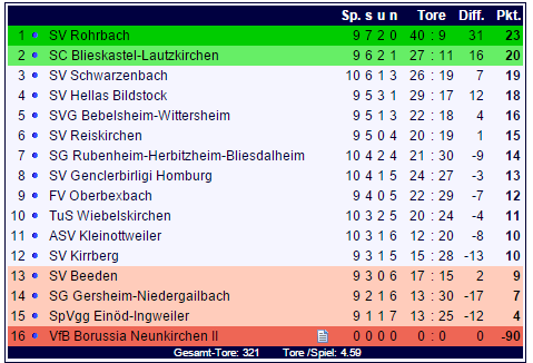 Auch an diesem Wochenende war ein Team der Landesliga Ost aufgrund des Rückzuges des VfB Borussia Neunkirchen II spielfrei: Der SV Rohrbach konnte nach einem 5:2-Ausäwrtserfolg beim Spitzenspiel in Blieskastel-Lautzkirchen recht gelassen auf die Spiele der Konkurrenz blicken, war die Tabellenführung doch sicher: