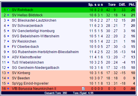 Damit ist der 11te Spieltag der Landesliga Ost gespielt: Der ASV Kleinottweiler sorgt für eine Überraschung in Blieskastel-Lautzkirchen während der SV Rohrbach und der SV Hellas Bildstock dreifach punkten: