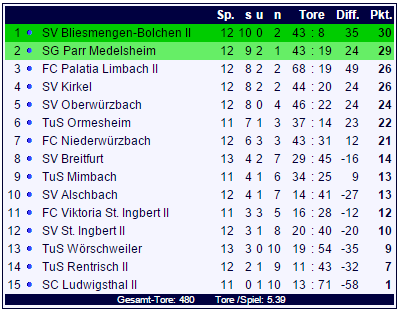 | SV Bliesmengen-Bolchen II | | | | spielfrei |