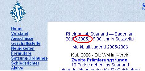 Was aber mindestens genauso unverständlich erscheint, ist die Tatsache, dass die E-Mail, die ich vor über einer Woche an den SFV geschickt habe, mit der Bitte um eine offizielle Bestätigung, dass Breitfurt in Wertung spielt, bis heute ohne Antwort blieb. Wer also seinen Datenmüll loswerden will einfach per Mail an den SFV senden, dann verschwinden die Daten garantiert im Nirwana. Und dass man auf der offiziellen Internetseite des SFV dazu Informationen erhält, braucht man ohnehin nicht zu hoffen, denn erstens wird die Seite nie aktuallisiert und will man Tabellen wird man wohin verwiesen? Richtig zum DFBnet bzw. fussball.de. Wenigstens wird man auf der Internetseite des SFV schon auf der Startseite sehr früh über wichtige Termine Informiert: