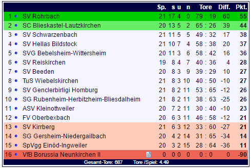 Damit ist der 22ste Spieltag der Landesliga Ost komplett: Der SV Rohrbach und der SC Blieskastel-Lautzkirchen können Siege einfahren, die Verfolger patzen dagegen erneut und entsprechend wächst der Vorsprung des Führungsduos auf die Konkurrenten: