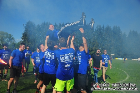 Nach dem Schlusspfiff wurde der Meistertitel beim SVB natürlich standesgemäß gefeiert: Bierduschen, Fangesänge und Bengalos sorgten für mächtig Stimmung auf dem SVB-Rasenplatz. Blickweiler hat damit den Fluch des Vorjahres selbst erledigt: Der SV Heckendalheim war es seinerzeit, der die Aufstiegsträume des SVB im Saisonendspurt beendete, nun könnte es gut sein, dass der SV Blickweiler die Zeit des SVH in der Bezirksliga Homburg aktiv beendete, dürften doch die Ergebnisse aus der Landes- und Verbandsliga für große Sorgenfalten beim SVH sorgen, während der SVB sicherlich einen langen und ausgiebigen Feiermarathon starten wird.