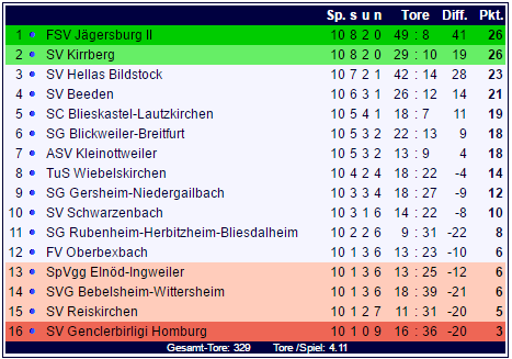 Das Spitzenduo des FSV Jägersburg II und des SV kirrberg bleibt damit auf Kurs, Bildstock und Beeden verlieren etwas an Boden im Rennen um die Top-Platzierungen: