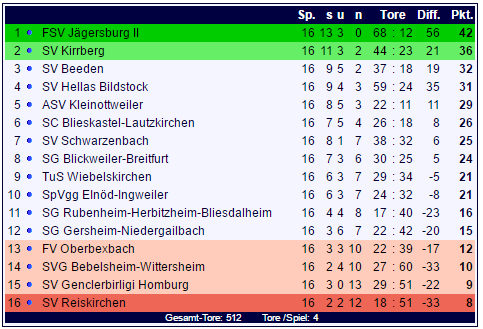 In der Tabelle der Landesliga Ost bleibt der FSV Jägersburg II sechs Puntke vor dem SV Kirrberg auf rang eins der Tabelle. Beeden und Bildstock befinden sich in Lauerstellung, auch Kleinottweiler hat noch Anschluss zu den Top-Plätzen, während der SC Blieskastel-Lautzkirchen den Kontakt zur Spitze mehr und mehr vierliert: