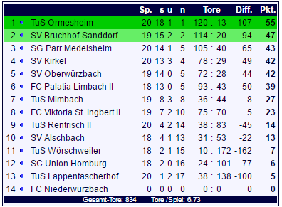 In der kommenden Woche muss dann der TuS Ormesheim am Osterspieltag pausieren und die Fans sind gespannt, ob die Verfolger die Zwangspause des TuS ausnützen würden, um ihn unter Druck zu setzen.