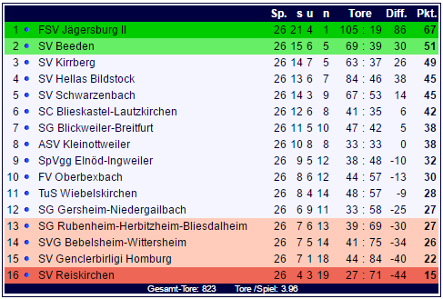 Die Entscheidung im Titelrennen wurde in der Vorwoche durch die SG Rubenheim-Herbitzheim-Bliesdalheim vertagt, nun konnte der FSV Jägersburg II an diesem Wochenende als Meister durchs Ziel gehen und auch im Kampf um den Relegationsplatz und den Abstieg rücken die Entscheidungen näher: