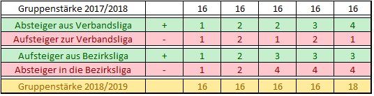Die Zahl der Absteiger in der Verbandsliga hängt von zwei Faktoren ab: Zum Einen von der Zahl der Saarlandliga-Absteiger, zum Anderen davon ob der eigene Tabellenzweite den Aufstieg in die Saarlandliga realisieren kann:
