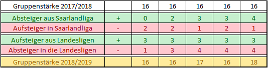 Die Saarlandliga geht als höchste saarländische Spielklasse mit 18 Mannschaften in die Saison 2016/2017. Beim Blick auf die Zahlenschlüssel werden die unterschiedlichen Konstellationen im Auf- und Abstiegskampf klar: