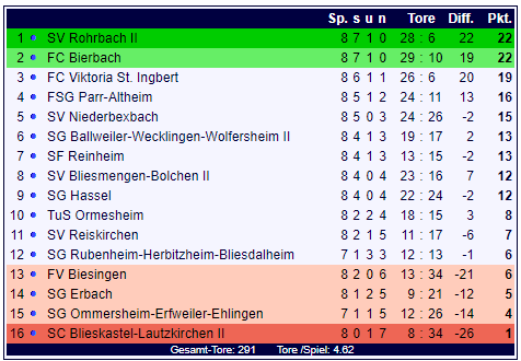 Der 8te Spielatg der Bezirksliga Homburg stand an diesem Wochenende ganz im Zeichen des Spitzenspiels in Rohrbach, wo sich die punktgleichen Spitzenreiter des SV Rohrbach II und des FC Bierbach gegenüber standen.