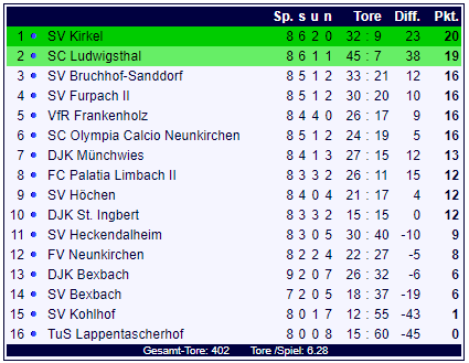 Für die Fans der Kreisligen A Bliestal und Saarpfalz stand an diesem Wochenende der achte Spieltag auf dem Terminkalender und teils knappe Resultate uns Remis sorgten für spannende Partien in der Liga: