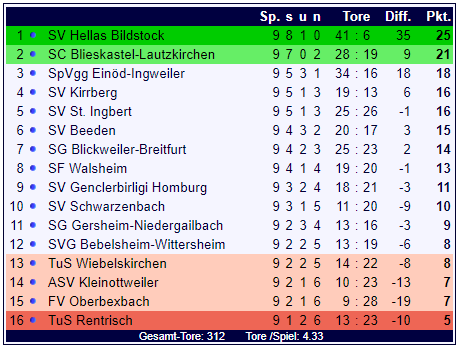 Weiter ging es dann am Sonntag: Mit insgesamt sieben Partien wurde der neunte Spieltag komplettiert. Allem voran das heißt erwartete Spitzenspiel in Einöd-Ingweiler: