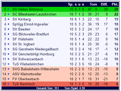 SV Hellas Bildstock: Ecker, Manuel - Alff, Michael - Berrang, Dominik - Kuhn, Dominic - Schweitzer, Lukas - Zimmer, Manuel - Staub, Kevin - Müller, Daniel - Zavaglia, Mirco - Kriesch, Julian - Dede, Onur; Spielerwechsel: (55.) Dede, Onur Stephan, Dominik - (81.) Berrang, Dominik Sottosanti, Stefano - (81.) Kuhn, Dominic Kohler, Maximilian