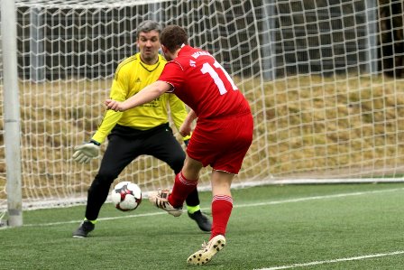 Nach dem Pausentee ließ es der SVA im Gefühl des sicheren Sieges wieder ruhiger angehen. Zunächst konnte Dennis Massing (55.) auf 1:4 verkürzen, ehe Giuseppe Alaimo (70.) zum 2:4 traf. Der SV Alschbach kam nun aber wieder in die Spur und am Ende stand ein 4:2-Auswärtserfolg und die Tabellenführung für die Rot-Weißen aus Alschbach.