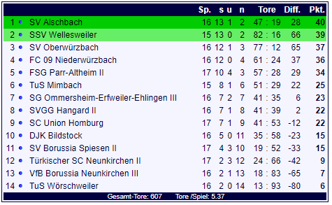 Vor 70 Fußballfans in Bildstock wollte sich der SV Alschbach durch einen Sieg wieder an die Tabellenspitze setzen, musste doch der SSV Wellesweiler die Füße hoch legen. Filip Decker (9.), Daniel Lantz (13.) und Robin Hugo (19.) brachten den SVA früh mit 3:0 in Front, ehe Victor Bialecki (33.) noch vor der Pause auf 4:0 erhöhte und für eine Vorentscheidung sorgte.