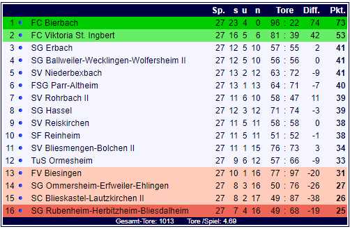 Obwohl die Bezirksliga Homburg bekanntermaßen mit dem FC Bierbach ihren Meister schon gefunden hat, ist vor allem der Abstiegskampf spannend wie selten: Mehr als eine Hand voll Teams muss noch mächtig zittern und entsprechend gibt es kaum bedeutungslose Partie an diesem 27sten Spieltag an einem sonnigen ersten Maisonntag: