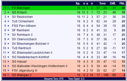 SG Bliesgau II: Jonas Kiehlmeier, Hendrik Fuchs, Fabian Weiser, Eric Keller, Philipp Schöndorf, Pascal Kasel, Felix Welsch (60. Benjamin Schöndorf), David Mischo, Jonas Klein, Sven Wust, Fabian Degott