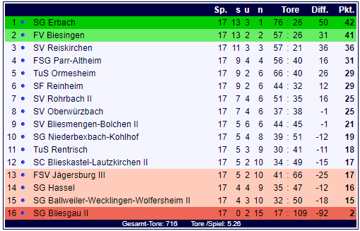 Das Titelrennen in der Bezirksliga Homburg sorgte kurz vor dem Jahresende für mächtig Spannung und neben dem Abstiegskampf war die Tabellenspitze demnach der Hauptschauplatz des 17ten Spieltages mit einem Führungswechsel: