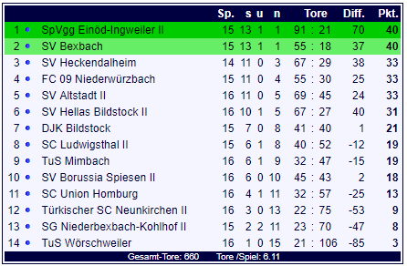 | SV Hellas Bildstock II | | | | SV Bexbach |