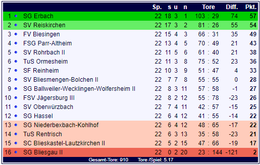 Bezirksliga Homburg, 22. Spieltag