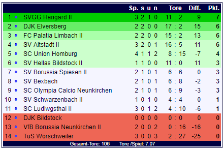 | SV Hellas Bildstock II | | | | spielfrei |
