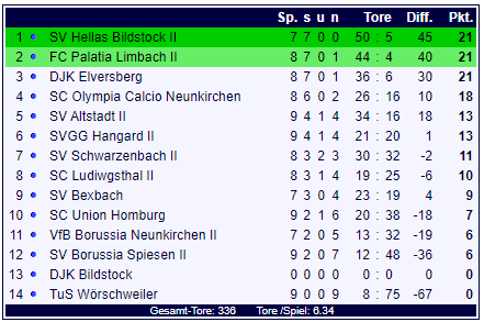 | SV Hellas Bildstock II | | | | SV Altstadt II |