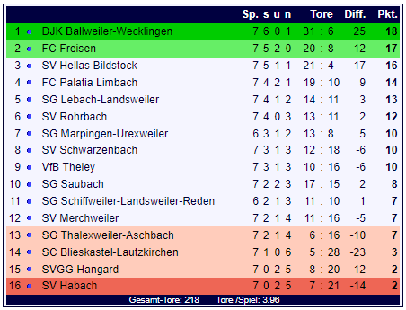 Die Verbandsliga Nordost hatte an diesem 7. Spieltag einen zweigeteilten Spieltag zu bieten: Drei Spiele fanden bereits am Samstag statt, fünf am Sonntag und darunter das Spitzenspiel des FC Palatia Limbach gegen die DJK Ballweiler-Wecklingen: