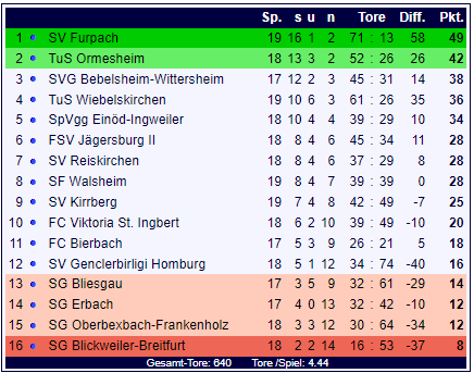 SV Furpach: F. Schmitt - M. Hüther - S. Kleinmann - M. Persch - N. Weitmann - D. Hartmann - P. Schmelzer - B. Schuck - F. Simon - M. Wettmann - J. Tobä; Spielerwechsel: -