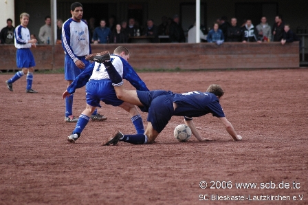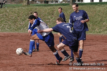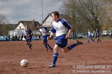 Es war eine Partie ohne Höhepunkte, ein Spiel, das mangels Torchancen nicht sonderlich schön anzusehen war, schnell vergessen sein wird und am Ende mit einem leistungsgerechten 1:1-Untschieden zuende ging. Damit ist über das Spiel der Ersten an diesem Sonntag beim Lokalderby in Breitfurt wohl alles gesagt. Zu schwach präsentierten sich beide Temas und waren vor allem nicht in der Lage sich klare Torchancen herauszuspielen, selbts die zuletzt so starke SCB-Offensive um Top Torjäger Flavio Baier blieb an diem Nachmittag zumeist blass. Für die Zuschauer also alles andere als ein tolles Fußballspiel, das Spiel lebte ausschließlich vom Charakter des Lokalkampfes und der Spannung zum Ende hin. Wenigstens nahm die Partie durch eine Standardsituation oder die unmittelbare Folge davon nach gut 65 Minuten wieder etwas Fahrt auf. Hätte Michael Welker einen Fernschuss aus 20 Metern nach einem Freistoß nicht zur Gästeführung verwandelt, das Spiel wäre wohl weitere 25 Minuten vor sich hin geplätschert und mit 0:0 zu Ende gegangen. So wurde den gut 100 Zuschauern in Breitfurt, wenigstens in den letzten 20 Minuten ein bisschen Fußball (wenn auch viel Rohkost) geboten. So bleibt am Ende für die Statistk ein 1:1 festzuhalten, mit dem wohl beide Teams gut leben können, bleiben sie doch beide in 2006 weiter ungeschlagen. (Kompletter Spielbericht Erste: