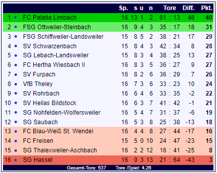 Ich gönne Limbach den ersten Tabellenplatz von ganzem Herzen. Umso mehr freue ich mich nämlich auf die selbe Zeit nächstes Jahr, wenn man bei der Palatia lange Gesichter sieht, da man abgeschlagen auf dem letzten Tabellenplatz der Schröder Liga Saar steht. Das wird ein Spektakel!