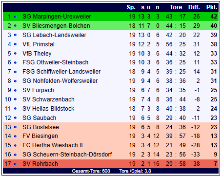 | SV Bliesmengen-Bolchen | | | | spielfrei |