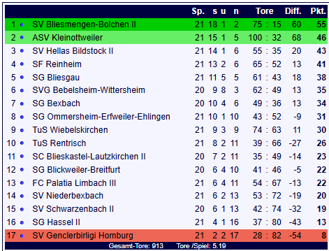 | SV Genclerbirligi Homburg | | | | SV Bliesmengen-Bolchen II |