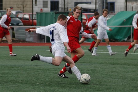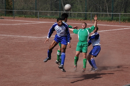 Sascha Stephan steigt beim Dabakel in Rentirsch zum Kopfball
