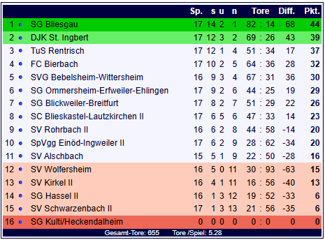Blickweiler tritt auf der Stelle. Schade. Die SG Bliesgau macht ihr Ding und wird nicht zu stoppen sein!