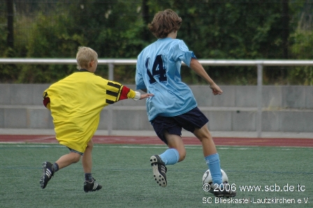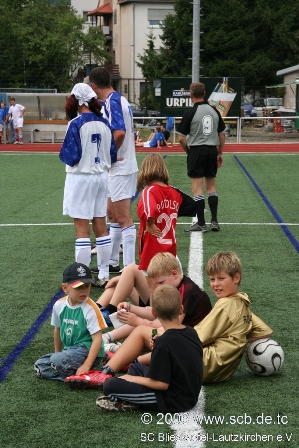 „Eine Stadt spielt Fußball“, so das Motto des Samstags beim SCB-Sportfest: „Eine Stadt spielt Fußball“, das sind fast 120 Hobbyfußballerinnen und Hobbyfußballer, die sich in 12 Mannschaften zusammenschlossen um am Ende eines langen Turniers und 34 Partien die beste Hobbymannschaft der Stadt Blieskastel ermittelten. Das Spektrum der Mannschaften war breit: Lokale Vereine, wie die BKG, der TTC Lautzkrichen, die LG Bliestal, der TC Blieskastel und die Freiwillige Feuerwehr aus Blieskastel; Vereinsinterne Mannschaften, wie der Vorstand des SCB, der SCB-Fanclub und eine Eltern Mannschaft der F- & E-Jugend; Kneipenmannschaften, wie das Team Cerberus und das Team Sudhaus waren ebenso vertreten wie die Familienmannschaft der Familie Klein. Ebenfalls gemeldet war eine Mannschaft der „Grünen“, die aber trotz Zusage leider unabgemeldet dem Turnier fernblieb. 11 Mannschaften, die auch in ihrer Zusammensetzung unterschiedlicher nicht hätten sein können: alt und jung, Erwachsenen und Kinder, Männer und Frauen, Fußballer und solche die es vielleicht noch werden wollen und gerade diese Mischung machte am Ende den großen Reiz des Turniers aus, gab es doch oft ungleiche Duelle, die aber nicht immer den von allen erwarteten Ausgang nahmen.