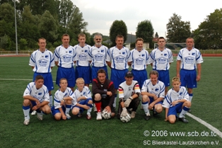 Der Sieger auf dem Feld nach einem langen Turnier stand also fest, die Vorstandschaft hatte gewonnen. Der wahre Sieger nach einem solch tollen Turnier ist aber der Fußballsport, denn an diesem Nachmittag spielte im Land des Weltmeisters der Herzen fast eine ganze Stadt Fußball, so wie es das Motto des Tages versprach und echte Verlierer, die gab es an diesem Nachmittag nicht. Der Pott bleibt also beim SCB-Vorstand, aber im nächsten Jahr wird es umso schwerer den Wanderpokal zu verteidigen, wenn es wieder heißt: „Eine Stadt spielt Fußballl“…