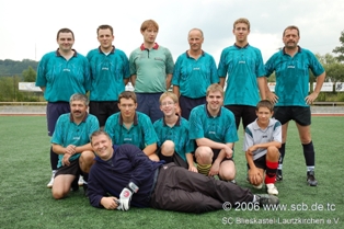 Mittags um 12 fanden sich die Mannschaften langsam an der Kunstrasenanlage des SCB ein, mehr oder weniger ambitioniert, aber allesamt mit dem Ziel es den Gegner möglichst schwer zu machen. Nach den ersten Annäherungsversuchen mit dem für einige neuen Spielgerät, dem Fußball, ging es dann um 13:30 Uhr zur Sache. Über die Favoritenrolle befragt gab es im Vorfeld bei hitzigen Diskussionen unterschiedliche Meinungen, aber nun war die Zeit der großen Worte und der Spekulationen vorbei, die Wahrheit lag, frei nach Sepp Herberger, auf dem Platz und es ging los: Schon in den ersten Partien der Vorrunde gab es die ersten Überraschungen, die ersten „Favoriten“ mussten Federn lassen und die zahlreichen Zuschauer bekamen ein Bild von den Kräfteverhältnissen im Teilnehmerfeld. Wer aber glaubte, dass sich irgendein Team seinem Schicksal kampflos ergab, der sah sich getäuscht und so kam es, dass auch der schon fast sichere Tabellenerste mal vom abgeschlagenen Letzten besiegt wurde. Niemand verschenkte auch nur einen Punkt und ließ ein Tor ohne Gegenwehr zu, aber dennoch und das spricht für das Motto des Turniers gab es über die gesamte Turnierdauer keine bösen Fouls, sondern nur fairen Fußball und eines Stand immer im Vordergrund: Der Spaß!