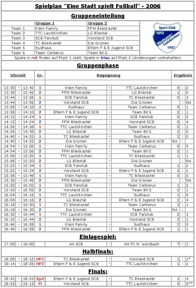 Endergebnis „Eine Stadt spielt Fußball“ 2006: