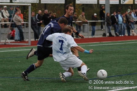 Das Derby gegen Breitfurt. Auch in diesem Jahr ein ganz heißer Ritt, bevor man am Ende die drei Punkte feier konnte. Schon nach 17 Minuten ging der SCB im Derby durch einen Foulelfmeter in Führung und bis dahin lief eigentlich alles wie bei den jüngsten Heimspielen des SCB. Blieskastel kontrollierte das Spiel, hatte mehr Ballbesitz und hatte den Gegner weitestgehend im Griff. Der Rückschlag kam dann nach einer guten halben Stunde, als SCB-Goalgetter Flavio Baier mit Gelb-Rot vom Platz musste. Eine äußerst zweifelhafte Entscheidung zwar aber all das Hdern mit der Entscheidung half nichts: 60 Minuten Unterzahl standen nun gegen den unmittelbaren Tabellenkonkurenten aus Breitfurt im Derby auf dem Programm und jedem war klar: Das wird bestimmt kein Spaziergang und nur die wenigsten glaubten nun noch daran, dass es dem SCB gelingen würde die ohnehin knappe Führung über die Zeit zu bringen. Blieskastel strafte aber alle Kritiker und Pessimisten lügen und am Ende stand sogar ein 2:0-Sieg, der erneut untermauert, wie gefestigt, die Jungs aus Blieskastel derzeit auf dem Fußballplatz zu Werke gingen. Ein Husarenstück, wie es der SCB schaffte, in Unterzahl fast keine Möglichkeit der ideenlos wirkenden Breifurter zuzulassen. Breitfurt schien phasenweise an der wiederum gut stehenden SCB-Defensive zu verzweifeln, fand man doch selbst mit einem Feldspieler mehr in über 60 Minuten kein Mittel Torgefahr auszustrahlen und griff mehr und mehr zu hoffnungslosen Weitschüssen. Breitfurt über die gesamte Spielzeit wohl nur mit einer hochkarätigen Torchancen, die aber aus einer Nachlässigkeit in der Vorwärtsbewegung der Blieskastler entstand. Christian Müller und Markus Müller machten den Faux-Pas aber gemeinsam mit vereinten Kräften wieder gut. Symptomatisch für die Leistung des SCB an diesem Tag SCB: Vorbildlich, wie man es schaffte, die durch die Unterzahl zwangsläufig entstehenden Lücken durch unglaubliche Laufbereitschaft und vorbildlichen Kampfgeist zu schließen und den SV Breitfurt am Ende zu Verzweiflung brachte und einen verdienten Derbysieg feiern durfte. (Eigener Spielbericht: