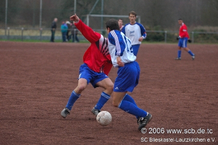 Das schwächste Spiel des SCB der letzen Wochen bekamen die gut 200 Zuschauer in Blickweiler also zu sehen. Nichts zu spüren vom berauschenden Offensivfußball vergangener Partien und keine Spur von der gewohnten Souveränität und Kaltschnäuzigkeit in der Defensive. Auswärts war der SCB also mal wieder wie sooft mehr Flop als Top. Ein kleiner schwarzer Fleck bleibt nach dieser Niederlage als zum Abschluss des Spieljahres 2006: Der SCB überwintert ob der Niederlage auf dem dritten Tabellenplatz, muss den just errungenen Platz zwei wieder für die SF Reinheim räumen. Nichtsdestotrotz bleibt für den SCB eine grandiose Aufholjagd und noch vor ein paar Wochen hätte man von solch einer Platzierung nicht zu träumen gewagt. Sicherlich ärgert man sich, dass man nach einer erneut schwachen Auswärtsleistung nun mit einer Niederlage in die Winterpause geht, aber dennoch sollt man die Niederlage im Gesamtkontext der letzten Woche beurteilen und bewerten. Blieskastel hat in den letzten Woche vor allem auf eigenem Platz tolle Spiele abgeliefert und am Sonntag war Blickweiler eben einfach besser. Kein Grund also den Kopf in den Sand zu stecken, hat man doch in der Vorbereitung viel Zeit die Verletzten wieder einzubinden und die Fehler die man gemacht hat gezielt abzustellen.