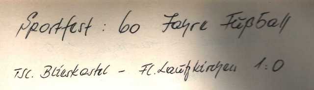 Anlässlich der Feier "60 Jahre Fußball" kam es zum ersten Aufeinandertreffen der AH-Mannschaften der beiden Vereine von denen uns Aufzeichnungen in Form von Spielberichten vorliegen: