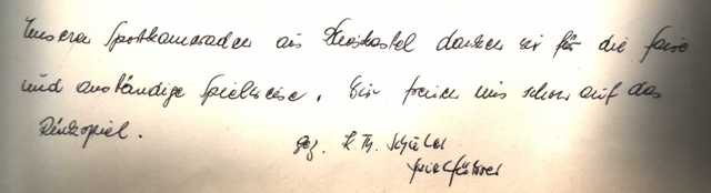 Die alten Spielberichte haben also auch heutzutagen noch einen ganz besonderen Charme und beim durchblättern der dicken, mittlerweile schon ein wenig vergilbten Bücher aus dem Archiv kommt auch immer wieder das eine oder andere Kunstwerk zum Vorschein: