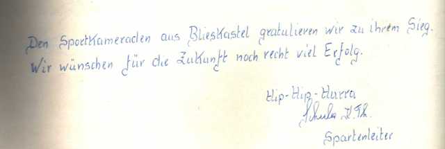 Das entscheidende Tor zum knappen 1:0-Erfolg erzielte seinerzeit A. Domprobst. Aber auch bei diesem Spiel stand bei aller Rivalität der Fairnessgedanke im Vordergrund: