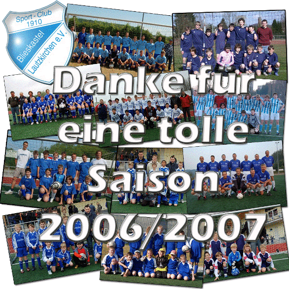Der SC Blieskastel-Lautzkirchen bedankt sich bei allen Spielern und Spielerinnen für eine tolle Saison 2006/2007, für ihren Einsatz und ihr Engagement im Trikot des SC Blieskastel-Lautzkirchen. Der Dank gilt aber auch vor allem unseren ehrenamtlichen Trainern, Betreuern und allen freiwilligen Helfern im Hintergrund ohne deren unermüdlichen Einsatz eine tolle Saison, wie die gerade zu Ende gegangene nicht möglich gewesen. Ihr ehrenamtlicher Einsatz hat es möglich gemacht, dass in Blieskastel 365 Tage im Jahr jeden Tag der Ball rollt. Dafür vielen herzlichen Dank! Auch wir vom Internetteam bedanken uns bei allen unseren Usern für die Treue über die gesamte Saiosn und hoffen, dass euch unser Service bei SCB-Online gefallen hat. In diesem Sinne: Freuen wir uns auf die neue Saison, hoffen, dass sie genau so einzigartig wird wie die Saison 2006/2007 und verteiben uns im Sommer die Zeit mit Fußball, denn langweilig wird es beim SCB auch in der "Sommerpause" nicht: Beim SCB stehen gleich drei große Events an: Das Jugendsportfest Anfang Juni, der FAMECHA Cup, Anfang Juli und das Sportfest mit dem "Eine Stadt spielt Fußball-Turnier" und dem Start in die neue Saison 2007/2008...