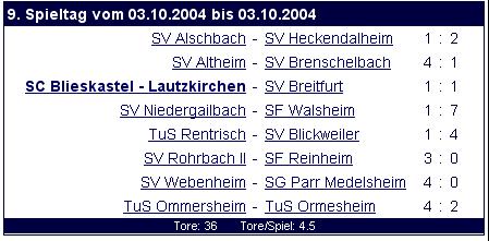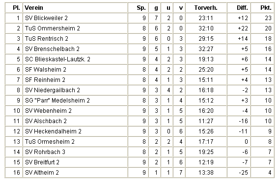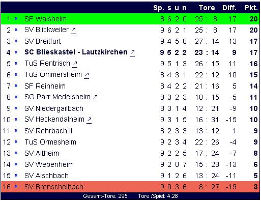 Die Tabelle der Kreisliga A Bliestal. Stand: 7. Oktober 2004