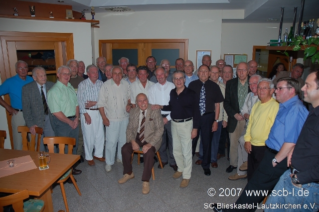 Besonderes Event in diesem Jahr: Die Fußballer, die in den vergangenen Jahren kein Treffen verpasst hatten, wurden anlässlich des 25-jährigen Jubiläums gesondert vom 2. Vorsitzenden des SC Blieskastel-Lautzkirchen Manuel Neulist, geehrt. Die sind im Einzelnen die Fußballkameraden: Kurt Becker, Reinhold Kolb, Waldemar Stolz, Hans Roppenecker, David Conrad und der 89-jährige Fritz Schwarz, der in jedem Jahr eigens für das Fußballertreffen die beschwerliche Reise aus Köln antritt. Des Weiteren wurde 6 Anwesenden eine besondere Ehre zu teil: Maria Rebmann, Karl Hager, Werner Hauck, Horst Stein, Alois Schuler und Alfred Hauck wurden für ihre 60-jährige Mitgliedschaft zu Ehrenmitgliedern ernannt. Das Treffen ist also längst eine Institution und man darf hoffen, dass es unsere Fußballer noch lange mit Leben füllen werden. So wird man sich auch im nächsten Jahr mit dem gleichen Elan wieder treffen, hoffentlich auch wieder vollzählig getreu dem gemeinsamen Motto: „Auch wenn die Jugend langsam schwindet, alte Fußballkameradschaft verbindet"...