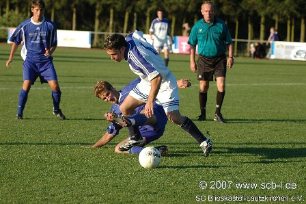 „Derby“… Allein schon die simple Erwähnung dieses bedeutungsvollen Begriffes verursacht beim gemeinen Fußballfan zumeist die stets gleichen Symptome: Gänsehaut, erhöhten Pulsschlag und zumeist große Vorfreude auf ein hoffentlich großartiges und unvergessliches Sportereignis. Sicherlich gibt es gerade für den SC Blieskastel-Lautzkirchen übers Jahr hinweg ein dutzend dieser sogenannten Derbys und ob der großen „Derbydichte“ im hauseigenen Terminkalender verliert der Lokalkampf schnell seinen besonderen und einzigartigen Charakter, aber es war eigentlich vor dem Spiel klar, dass die Vorzeichen für diesen Lokalkampf ganz besondere waren: Der SC Blieskastel-Lautzkrichen, der schon nach gerade einmal neun Spieltagen so unsanft aus den gehegten Meisterschaftsträumen erweckt wurde musste zum Gastspiel zum SV Blickweiler, der seines Zeichens als Zweiter der Tabelle noch immer ganz dicht am ersehnten Aufstieg ist und diesen Status quo mit allen Mitteln konservieren wollte. Und wem die ohnehin schon brisante Tabellensituation nicht Grund genug für obsessive und zuweilen überschwängliche Derbygefühle war, dem sollte ein weiterer Fakt genügen um sich endgültig mit dem hochansteckenden Derbyfieber zu infizieren: Die letzte Würze bekommt das Derby durch den historischen Fakt, dass an diesem 6. Oktober zum ersten Male eine blieskastler Mannschaft den nagelneuen Naturrasen betrat um wichtige Punkte vom Lokalrivalen zu entführen. Wie sagt der geneigte Fußballfan zur Einstimmung auf solche Spiele so gerne: „Es war angerichtet“ für ein ganz besonderes Derby zwischen dem SC Blieskastel-Lautzkirchen und dem SV Blickweiler, ein Derby, bei dem es um wesentlich mehr ging als nur um drei Punkte für die Statistik und jeder gespannt war, was die 22 Akteure aus diesen Vorzeichen machen würden. Vor allem bei den zahllosen SC-Fans sollte aber die sorgsam gehegte Vorfreude auf ein hart umkämpftes Derby mit Happy End für den SC schnell der Ernüchterung weichen, denn schnell war klar: Bei den 11 Akteuren in Blau war vom unbedingten Wille das Derby für sich zu entscheiden wenig zu sehen und spätestens nach dem 1:0 sicherlich aber nach dem 2:0 für die Hausherren war die Sache für den SC schon so gut wie erledigt. Das erhoffte „Jetzt-Erst-Recht“ verpuffte denkbar schnell und das 3:0 schoss den SC endgültig in das besagte Tal der Tränen. Der SC war schon zu Halbzeit geschlagen, kaum jemand hatte noch Hoffnung auf Besserung, als der SC unter den Pfiffen der eigenen Fans mit hängenden Köpfen, den Schauplatz dieses Derbys verließ. Gegen, ob der 3:0 Führung und der Harmlosigkeit der Gäste, etwas nachlässige wirkende Hausherren konnte der SC sich zu Beginn der zweiten Hälfte zwar mit dem zwischenzeitlichen Anschlusstreffer noch ein Fünkchen Hoffnung wecken, der aber von Blickweiler recht schnell und endgültig gelöscht werden sollte. Am Ende steht für den SC ein bitteres 2:5 und ein Spiel, das noch lange sehr, sehr weh tun wird… (Eigener Spielebricht: