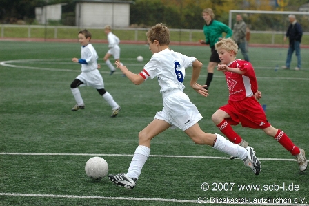 Es war ein echtes Endspiel: Der Zweite aus Erfweiler-Ehlingen kämpfte mit dem Dritten aus Blieskastel um den zweiten Tabellenplatz, der zum Aufstieg in die Leistungsklasse des Saarländischen Fußballbundes berechtigt. Unsere E-Jugend, die mit über 30 Spielern in drei Mannschaften zu den größten Jugenden des SC gehört machte es wieder spannend bis zum letzten Spieltag: Wie schon im Vorjahr ging es für die Jungs in Blau, die sich an diesem Samstag "ganz in weiß" den eigenen Zuschauern an der Florianstraße präsentierten im letzten Spiel um alles und man sah sofort, dass der SC nicht wie damals auf der Zielgeraden patzen wollte: Der SC zeigte ein engagiertes Spiel und ließ den Gästen von der ersten Minute an kaum eine Chance sich selbst zu entfalten: Blieskastel war in den Zweikämpfen unglaublich bissig und überzeugte im Offensivspiel durch eine beeindruckende Kombinationssicherheit. Drei Tore von Steven Jann, eine tadellose Leistung in der Defensive und tolle mannschaftliche Geschlossenheit waren für den SC am Ende der Schlüssel zum Sieg: Blieskastel gewann mit 3:0, zog damit in der Tabelle an Erfweiler-Ehlingen vorbei auf Tabellenposition zwei und sichert sich somit seinen Platz in der Leistungsklasse. Unterm Strich war die überragende Leistung gegen Erfweiler-Ehlingen das i-Tüpfelchen auf eine erfolgreiche Quali-Runde, die mit dem Aufstieg einen tollen Abschluss fand (Eigener Spielbericht: