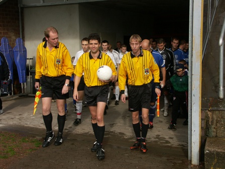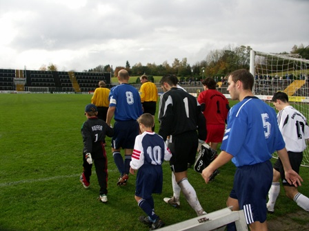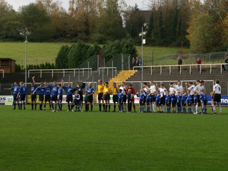 Nach dem Einlaufen begaben sich die Spieler zu ihren Eltern auf die Haupttribüne und verfolgten noch das Oberligaspiel der Borussia, die übrigens mit 2:1 gegen Hauenstein gewinnen konnten.