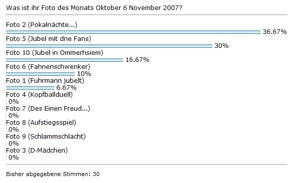 Es ist geschafft: Das letzte Foto des Monats des Jahres 2007 ist gewählt und durchgesetzt hat sich ein etwas anderes Foto, kein klassisches Sportfoto, sondern die Pokalimpressionen vom Spiel gegen den FC Palatia Limbach für das sich über 35% unserer User bei der letzten Abstimmung des Jahres 2007 entschieden haben: