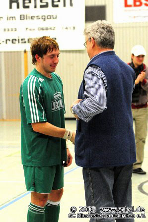 SC Blieskastel-Lautzkirchen gegen den SV Altheim: So hieß das Finale der Fußballstadtmeisterschaft 2008. Obwohl der SC zunächst durch Daniel Bartmann mit 1:0 in Front ging, agierte der SC über Weite Strecken im Aufbauspiel zu unkonzentriert und nach einem Dreifachschlag binnen 2 Minuten war Altheim plötzlich auf 3:1 davongezogen und sollte sich den verdienten Sieg nicht mehr nehmen lassen. Der Stadtmeister 2008 heißt damit SV Alhteim und der SVA sicherte sich damit nach 1993 den zweiten Hallenstadtmeistertitel! Herzlichen Glückwunsch…